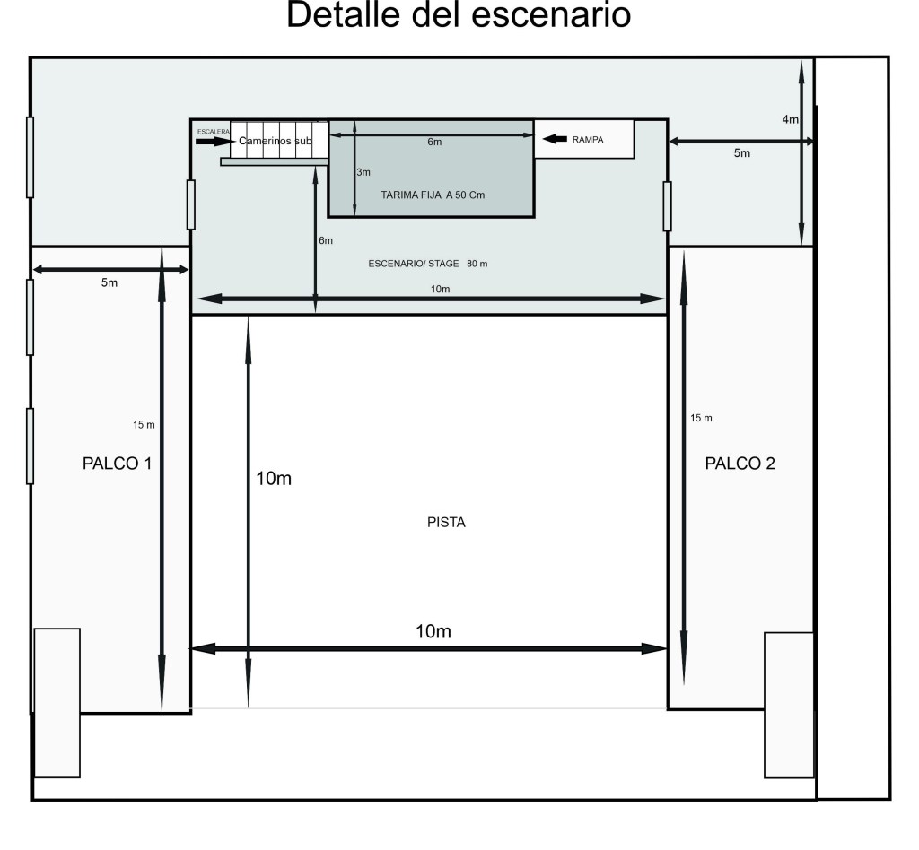 Acceso al escenario a nivel de calle para una fácil carga y descarga de equipos y equipamiento eventual.
