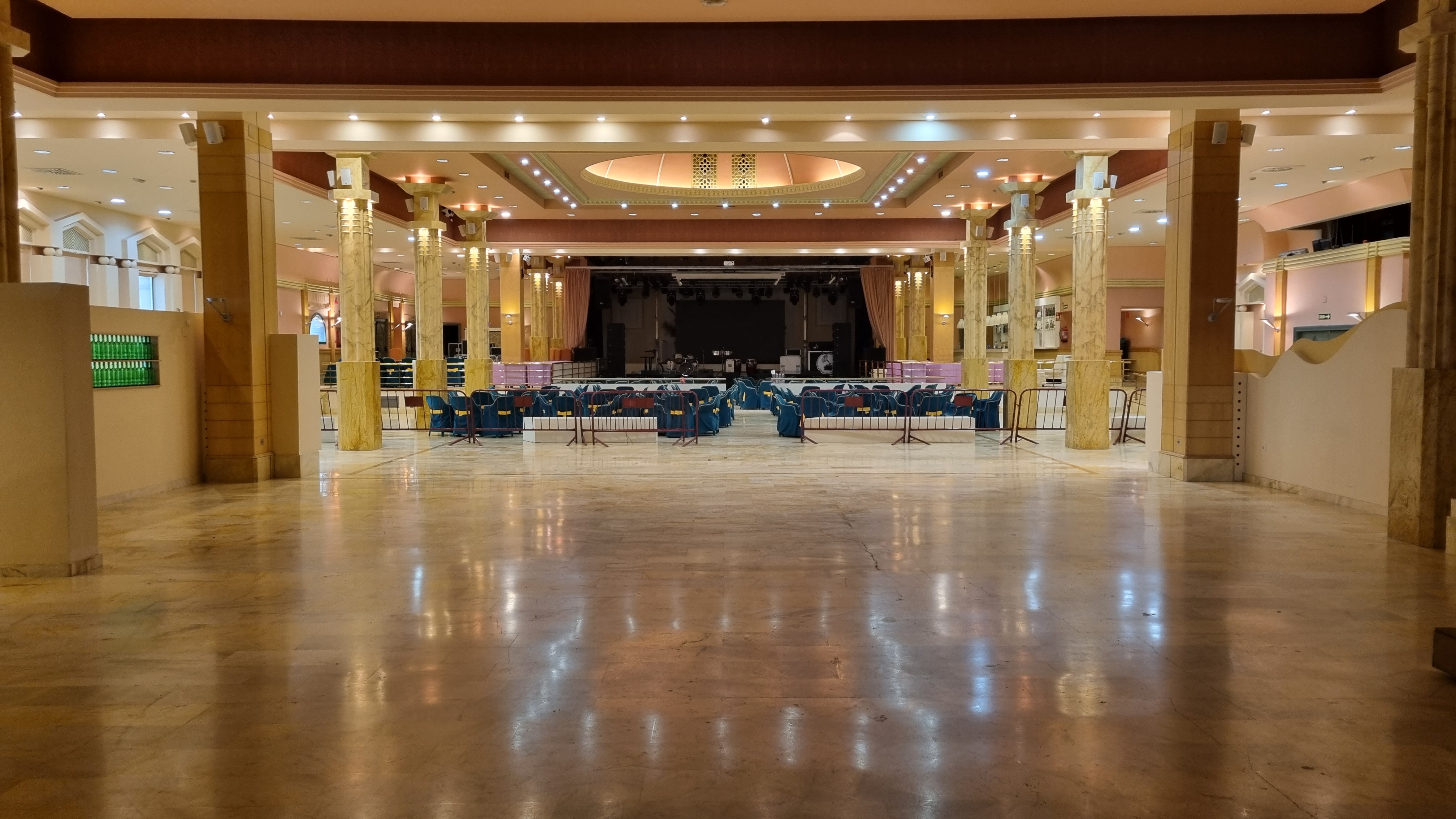 La sala cuenta con un amplio hall de entrada principal , donde están los aseos y otros equipamientos para la admisión y control de acceso de asistentes al evento.